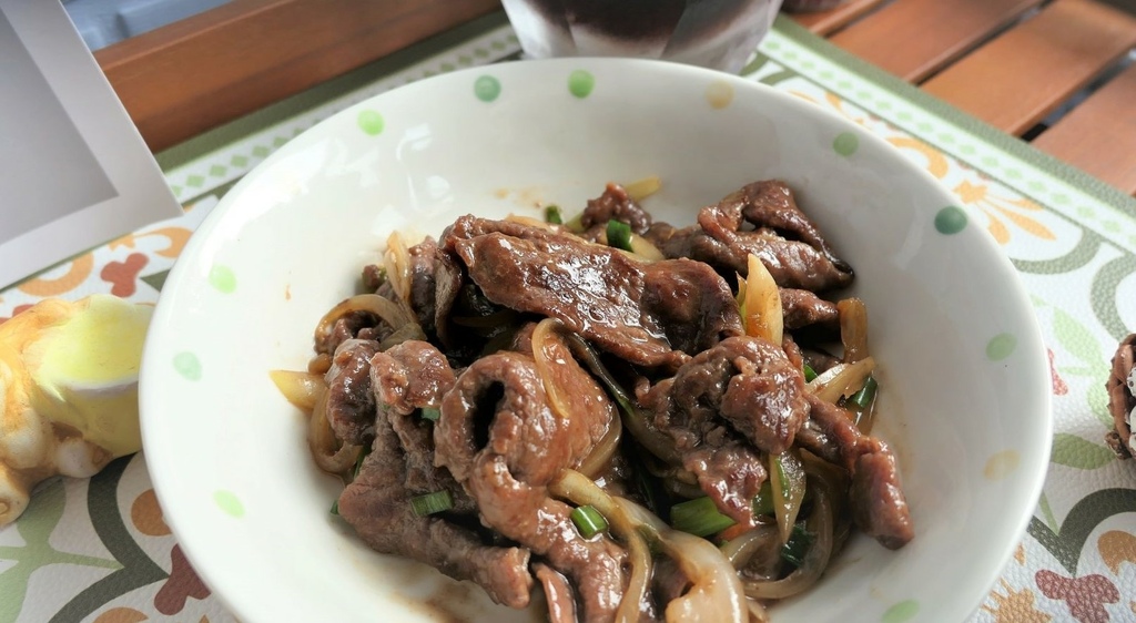 這一款的烹調非常簡單,我只額外準備了洋蔥和蔥。先將炒霜降牛肉炒至6分熟,再加入洋蔥、蔥段拌炒,最後醬汁稍微收乾即完成。